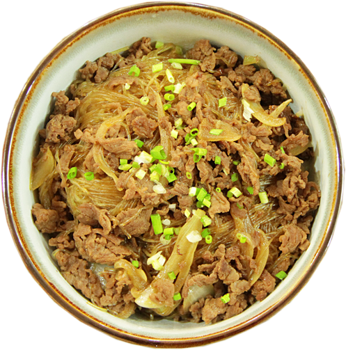 Thin slices of beef, onions, and vermicelli tossed in a special gydon sauce