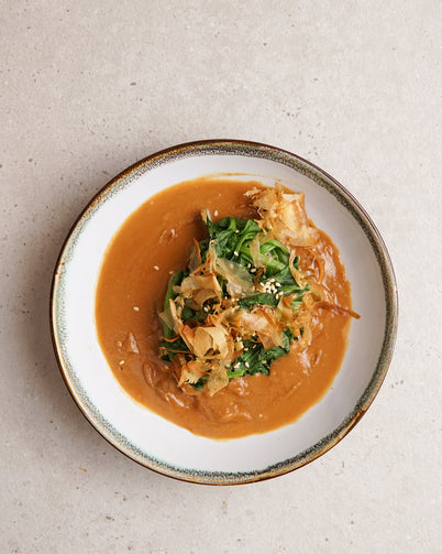 CHILLED BLANCHED SPINACH, CREAMY PEANUT DRESSING